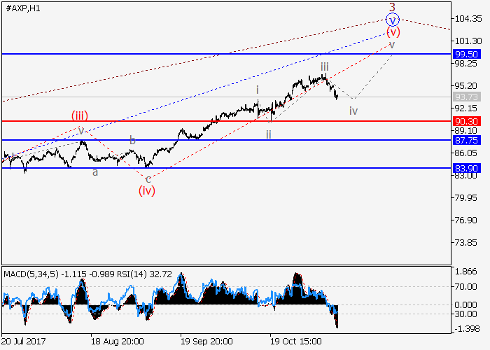 On the 4-hour chart the upward momentum is forming as a fifth wave v within the third wave 3 of the higher level. Locally the downward correction of the lower level iv of (v) of v of 3 is developing. If the assumption is correct, the price will grow to the level of 99.50. The level of 90.30 is critical for this scenario.