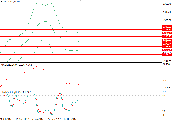 The pair XAU/USD is strengthening after Paul Ryan’s speech in the US House of Representatives. Speaker considers it dangerous for the country's economy to introduce a new tax code so quickly. The delay in the adoption of tax reform can make significant changes to the Fed's monetary policy plans for 2018. At the same time, the growth of yield on government bonds did not allow the pair to gain a foothold above the level of 1285.00.
