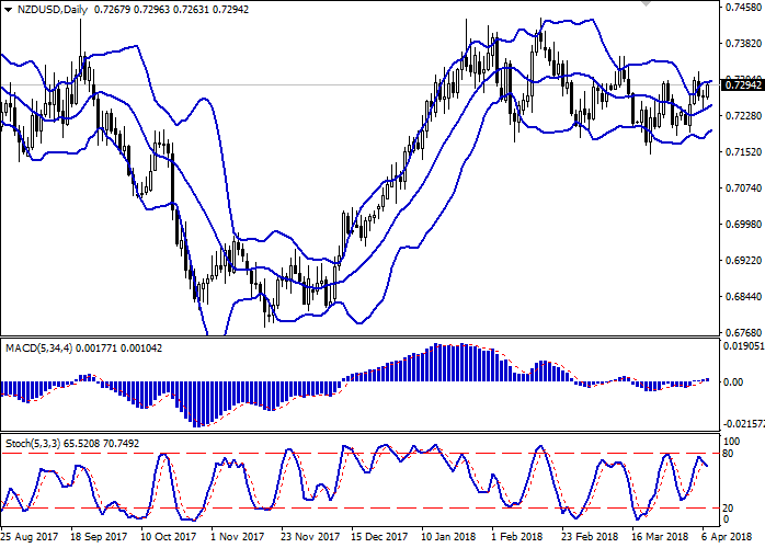 Long positions can be opened after the breakout of the level 0.7300 with the targets at 0.7340–0.7350 and stop loss 0.7280–0.7275. Implementation period: 2–3 days.