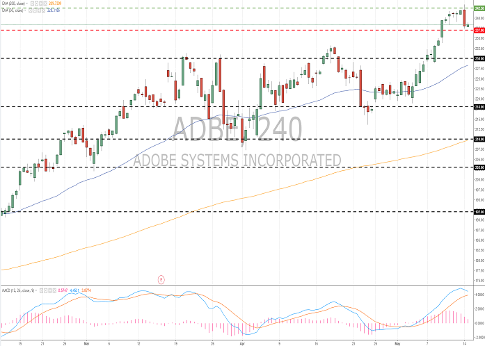 In the first half of May, Adobe stocks grew by 7.5% and renewed 52-weeks maximum of 241.93 USD on May 11. The instrument has increased by 36% since the beginning of 2018.