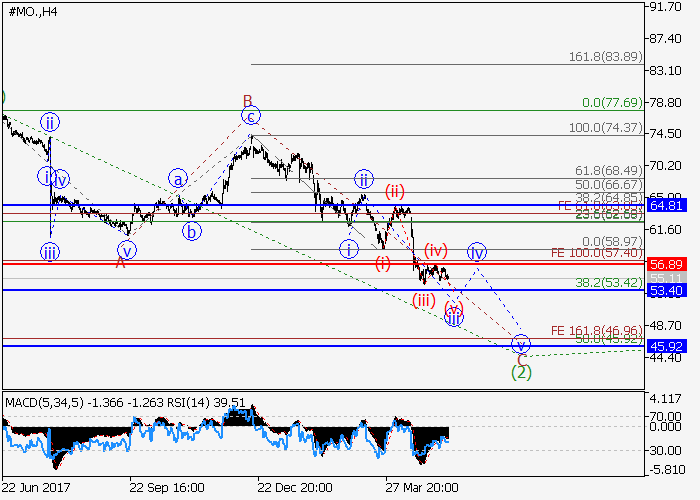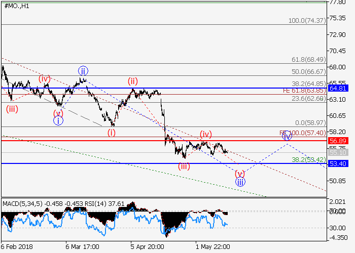 The large downward correction is developing as a wave (2) of the higher level. Locally the third wave of the lower level iii of C of (2) is developing, within which the correction (iv) of iii has ended, and the wave (v) of iii is forming. If the assumption is correct, the price will fall to the levels of 53.40–45.90. The level of 56.89 is critical and stop-loss for this scenario.