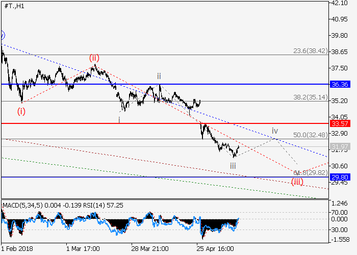 On the 4-hour chart, the downward correction of the higher level is developing as a wave (2) of the higher level. Now the fifth wave of the lower level v of C of (2) is forming, within which the wave (iii) of v is developing. If the assumption is correct, the price will fall to the level of 29.80. The level of 33.57 is critical and stop-loss for this scenario.