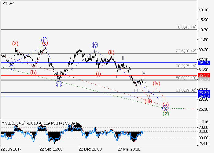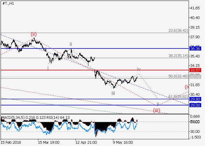 On the 4-hour chart, the downward correction of the higher level is developing as a wave (2) of the higher level. Now the fifth wave of the lower level v of C of (2) is forming, within which the wave (iii) of v is developing. If the assumption is correct, the price will fall to the levels of 29.80–29.00. The level of 33.57 is critical and stop-loss for this scenario.