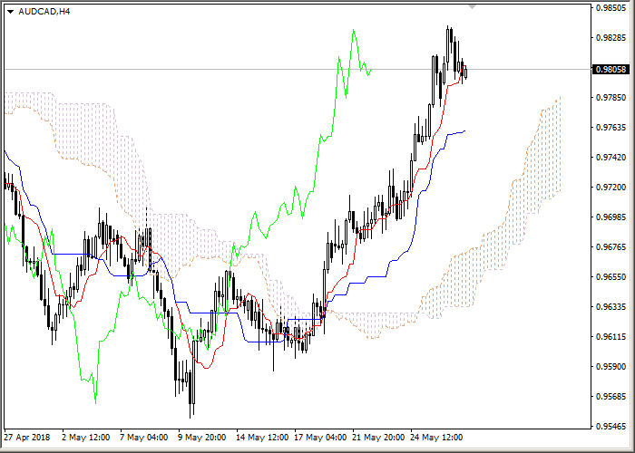 On the four-hour chart we can see a correction of the downward movement. On the daily chart the Bullish trend is still strong. It is recommended to open long positions at current price with the target at the level of previous maximum of Chikou Span line (0.9843) and Stop Loss at the upper border of the cloud (0.9775).
