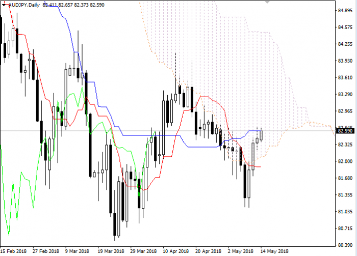 On the four-hour chart the instrument is still rising. On the daily chart the instrument is trading within the cloud. It is recommended to open long positions at current price with the target at the level of previous maximum of Chikou Span line (82.89) and Stop Loss at the upper border of the cloud (82.34).