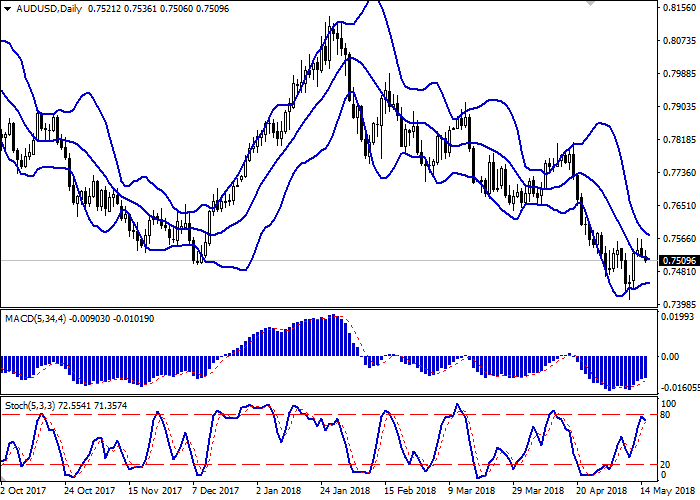 The breakdown of 0.7500 mark may serve as a signal to further sales with the targets at 0.7439, 0.7400. Stop-loss — 0.7540. Implementation period: 2-3 days.