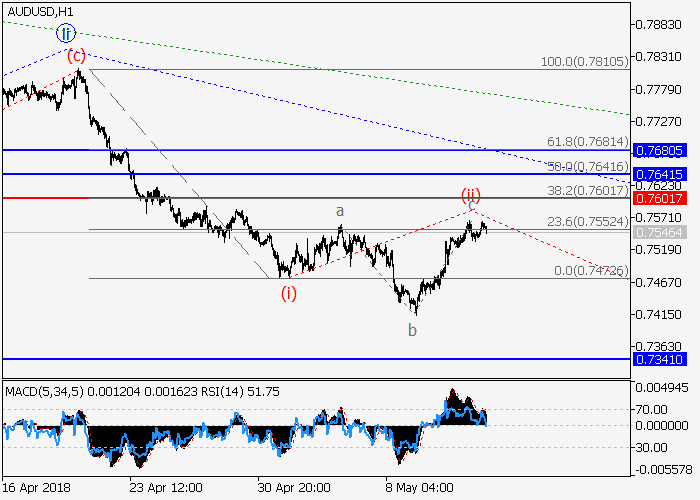 The breakout and the consolidation of the price above the level of 0.7601 will let the pair grow to the levels of 0.7640–0.7680.