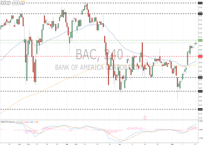 Recently #BAC quotes are dominated by "bullish" sentiment. Currently the issuer is testing the local "mirror" resistance level of 31.25. The local support level is 30.50. The company's shares have the potential for further resumption. Indicators show the strength of the buyers: the price has consolidated above MA(50) and MA(200), and MACD is in the positive zone. Still, positions may be opened from key levels.