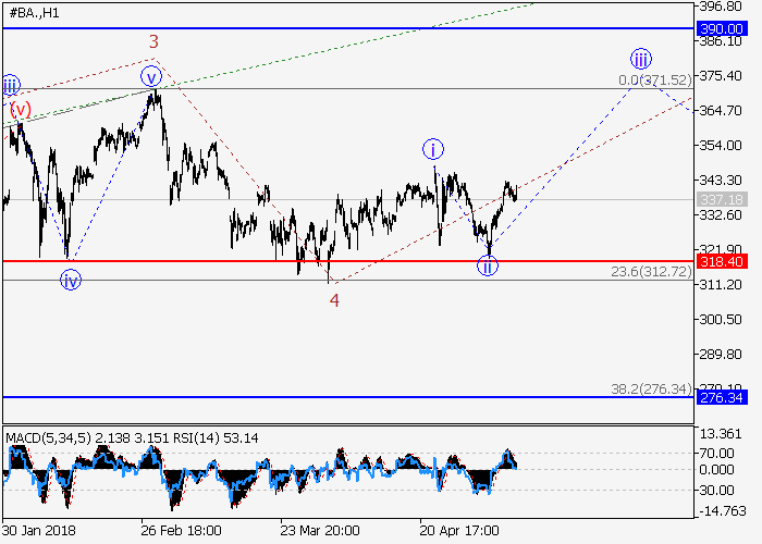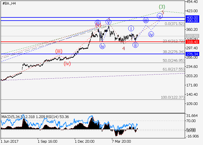 On the 4-hour chart, the upward momentum is forming within the third wave of the higher level (3). Now the fifth wave 5 of (3) is developing, within which the local correction of the lower level ii of 5 has ended. If the assumption is correct, the price will grow to the levels of 390.00–400.00. The level of 318.40 is critical and stop-loss for this scenario.