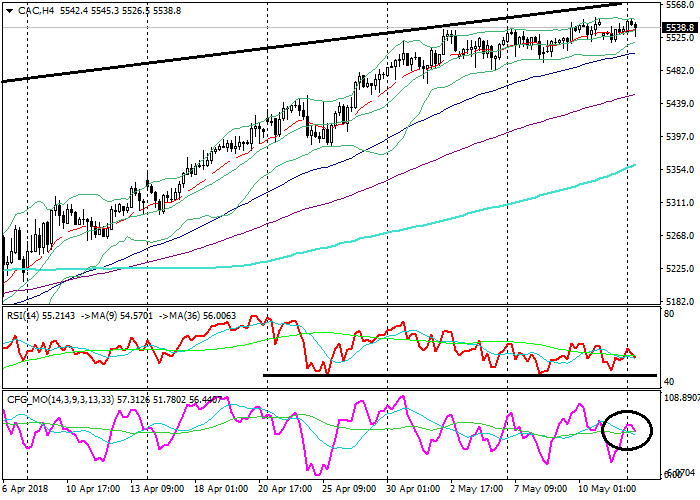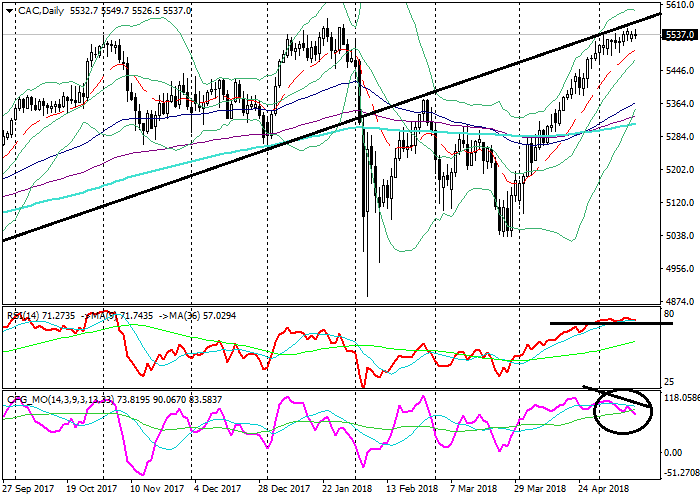 On the daily chart, the instrument is trading in the upper Bollinger band. The price remains above its moving averages that start turning up. The RSI is testing from above the border of the overbought zone. The Composite is breaking down its longer MA, having formed a Bearish divergence with the price.