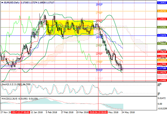 Yesterday, the pair correctionally grew and is now trying to consolidate above the level of 1.1718. USD is under pressure of canceling the US-DPRK summit, moreover, next week new sanctions may be imposed on DPRK. However, EUR is unstable due to the Italian and Spanish government crisis. The Socialist Party of Spain is ready to vote of no confidence in Prime Minister Mariano Rajoy, whose advisers are accused of corruption.