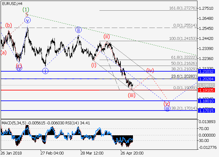 The breakdown and the consolidation of the price below the level of 1.1910 will let the pair go down to the levels of 1.1800–1.1700.