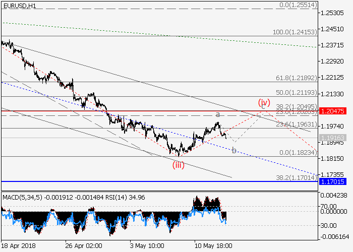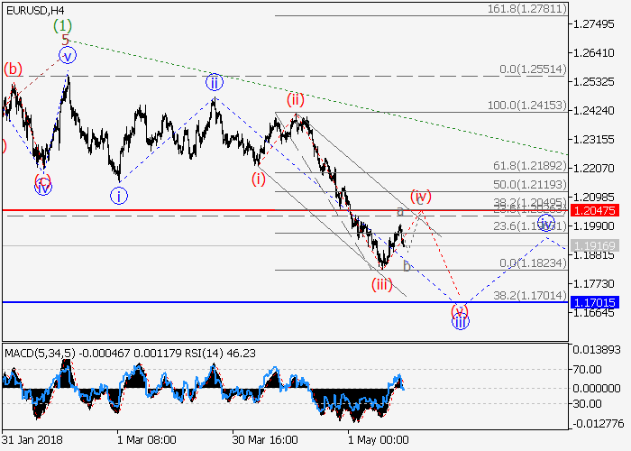 On the 4-hour chart, the downward correction of the higher level is forming as a wave (2), within which the wave A of (2) id developing. Now the third wave of the lower level iii of A is forming, within which the upward correction (iv) of iii is developing. If the assumption is correct, after the end of the correction the pair will fall to the level of 1.1700. The level of 1.2047 is critical and stop-loss for this scenario.