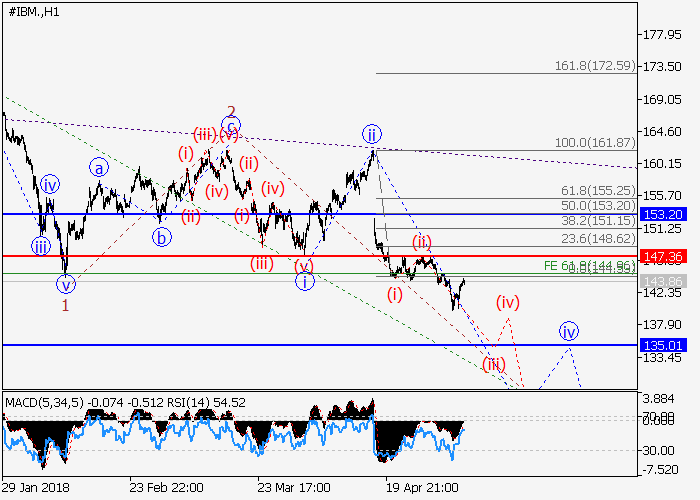On the 4-hour chart, the third wave of the higher level (3) of (C) is forming. Locally the third wave of the lower level iii of 3 is developing, within which the wave (iii) is forming. If the assumption is correct, the price will fall to the levels of 135.00–128.50. The level of 147.36 is critical and stop-loss for this scenario.