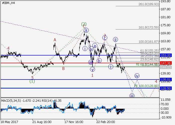 On the 4-hour chart, the third wave of the higher level (3) of (C) is forming. Locally the third wave of the lower level iii of 3 is developing, within which the wave (iii) of iii is forming. If the assumption is correct, the price will fall to the levels of 135.00–128.50. The level of 147.36 is critical and stop-loss for this scenario.