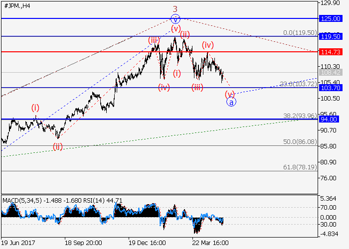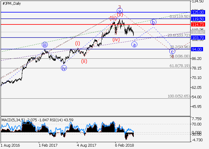 On the daily chart, the upward momentum has formed as a fifth wave v within the third wave 3 of the higher level. Locally the formation of the downward correction as a fourth wave 4, within which the wave a of 4 of the lower level is developing, has begun. If the assumption is correct, the price will fall to the levels of 103.70–94.00.