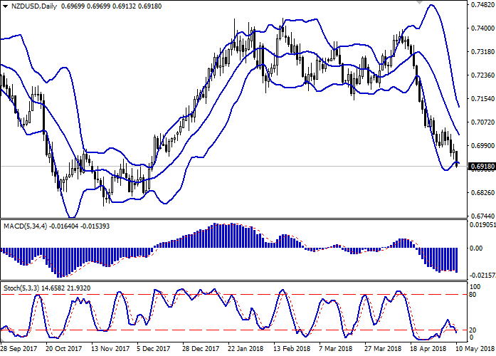 Stochastic shows a similar dynamics and approaches its minimum marks, which signals the oversold NZD in the short or ultra-short term.