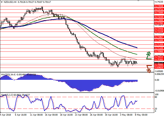 The breakdown of 0.7000 mark may serve as a signal to new sales with the targets at 0.6952 or 0.6900. Stop-loss — 0.7040. Implementation period: 2-3 days.