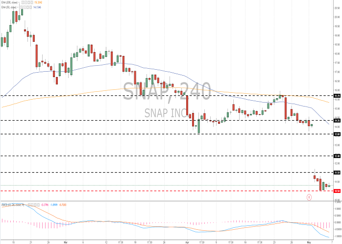 Snap Inc. shares fell by 22.8% against the backdrop of the publication of the quarterly report on May 1, ending last week at a historic low of USD 10.79. The number of active daily users increased to 194.15 million, revenue increased by 54% YoY to USD 230.7 million. Both figures were below market expectations, which put pressure on the issuer's quotes. The new Snapchat design to separate the friends' content from the publishers' has worsened the company's results, but management is confident in the long-term perspective of the approach.
