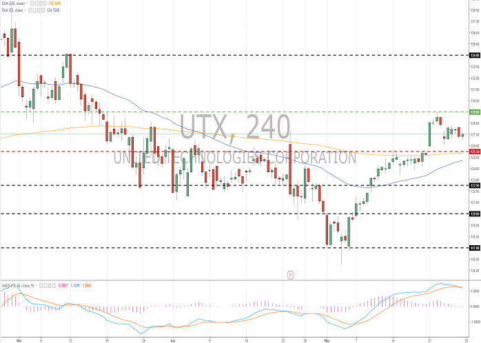 #UTX has been dominated by aggressive sales since the beginning of the month. At the moment, the company's shares are consolidating. The instrument has the potential to further growth. Indicators don't give a clear signal: the price consolidated above 50(MA) and 200(MA), and MACD histogram is close to zero zone. Positions are to be opened from key levels.