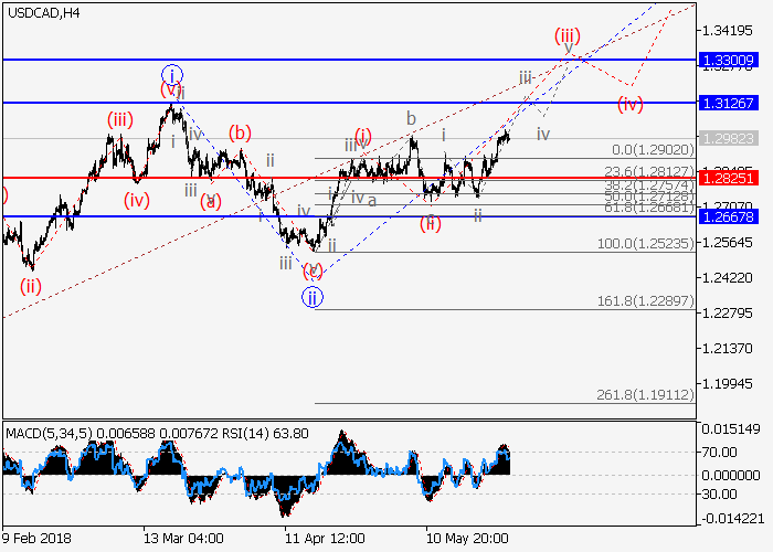 On the 4-hour chart, an upward trend is developing within the third wave of the higher level 3. Now the development of the local correction as a wave (ii) of iii has ended, and the formation of the wave (iii) of iii has begun. If the assumption is correct, the pair will grow to the levels of 1.3126–1.3300. The level of 1.2825 is critical and stop loss for this scenario.