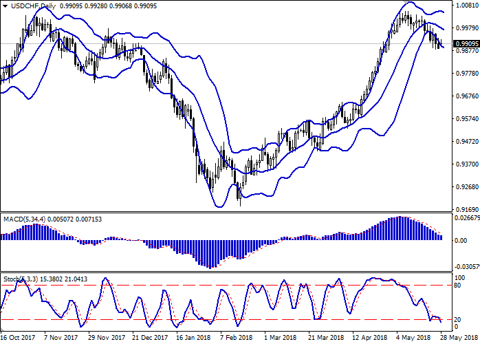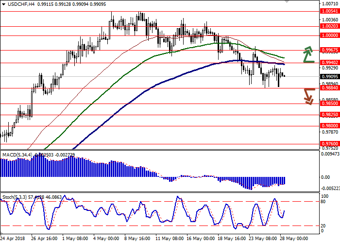 CHF was moderately supported by positive EU statistics, namely German IFO – Business Climate release. In May, the indicator rose from 102.1 to 102.2 points. The strongest growth was prevented by the political crisis in Italy and Spain. The problem of the new Italian government, which does not intend to comply with the EU budget rules, may be worsened by the Spanish government crisis. The Socialist Party of Spain led by Pedro Sanchez is ready to initiate a vote of no confidence in Prime Minister Mariano Rajoy, Who advisers are of corruption. Partido Popular (People's Party), and Rajoy could be aware of it.