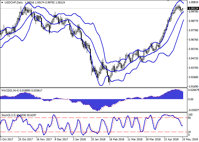 Yesterday USD insignificantly grew against CHF despite the renewal of local lows since May 2 during the session.