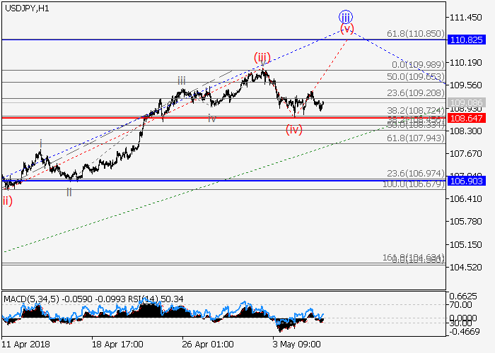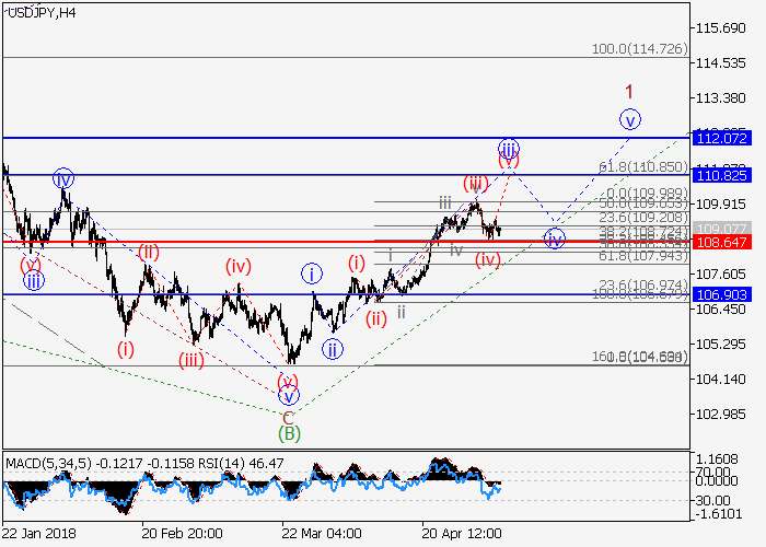 On the 4-hour chart, the upward momentum is forming as a first wave 1 of (C) of the higher level. Now the third wave of the lower level iii of 1 is developing, within which the local correction (iv) of iii has ended. If the assumption is correct, the pair will grow to the levels of 110.82–112.07. The level of 108.64 is critical and stop-loss for this scenario.