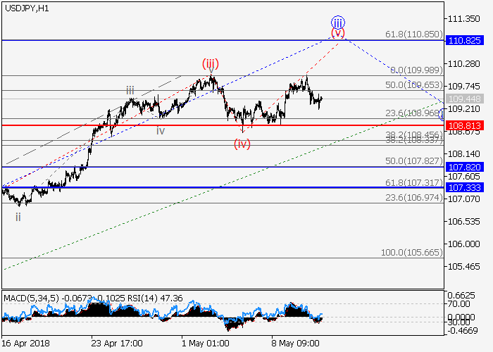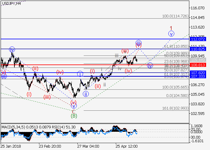 On the 4-hour chart, the upward momentum is forming as a first wave 1 of (C) of the higher level. Now the third wave of the lower level iii of 1 is developing, within which the wave (v) of iii is developing. If the assumption is correct, the pair will grow to the levels of 110.82–112.07. The level of 108.80 is critical and stop-loss for this scenario.