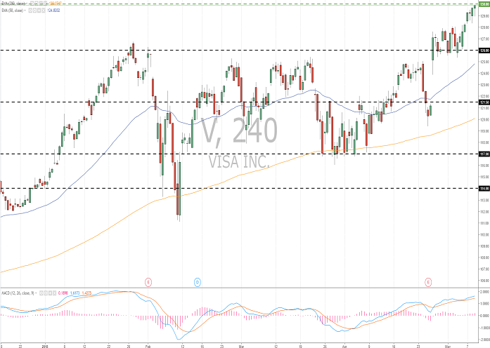 After the release of the strong quarterly report on April 25, Visa stocks grew by 7%. The statistic has exceeded The Wall Street income and profit expectations. The instrument is renewing its historical highs since the end of the last week. The income grew by 13% YoY to 5.07 billion USD, the corrected EPS increased by 30% YoY to 1.11 USD. Visa has also exceeded the YoY forecast of the corrected profit, expecting the average growth by 20% against the previous year.