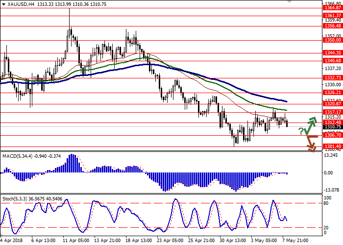 Long positions can be opened after the rebound at the level of 1306.70 with the target at 1312.48 or 1315.00 and stop loss 1301.40.