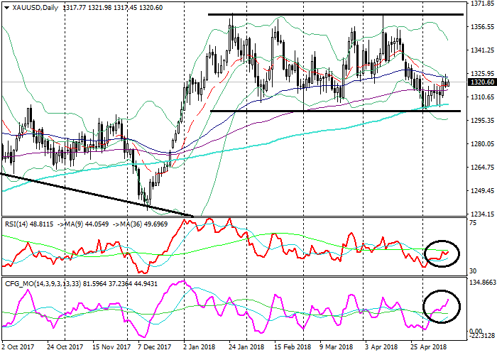 Long positions can be opened from the level of 1325.00 with targets at 1340.00, 1365.00 and stop-loss at 1315.00. Validity – 3-5 days.