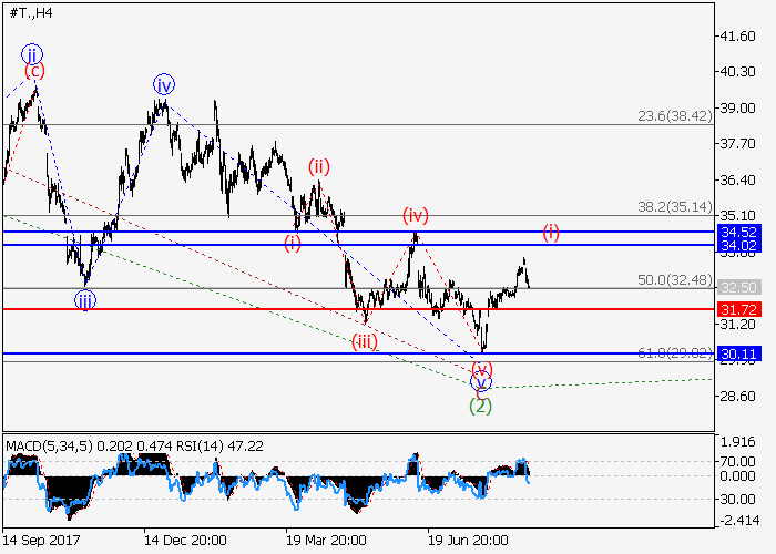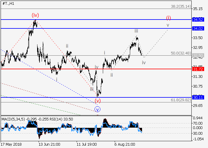 On the 4-hour chart, the downward correction of the higher level developed as a wave (2). Now the formation of the wave (3) has begun, within which the first wave of the lower level (i) of I is developing. If the assumption is correct, the price will grow to the levels of 34.02–34.52. The level of 31.72 is critical and stop loss for this scenario.