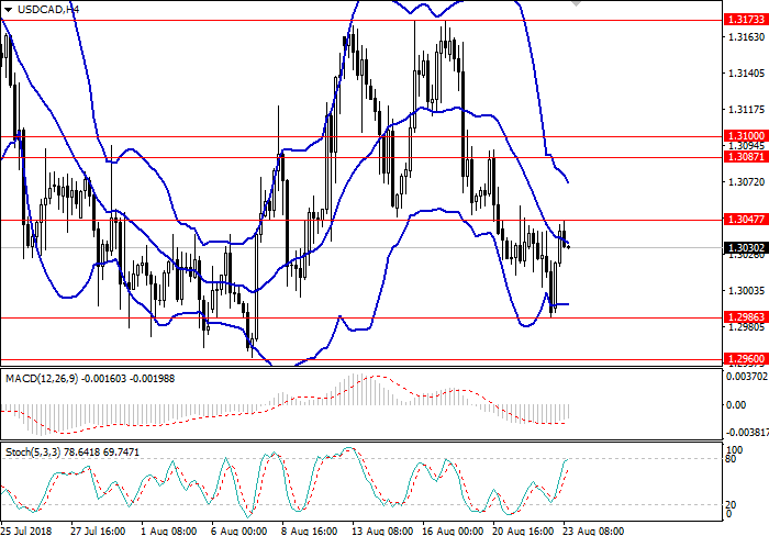 Yesterday, CAD strengthened against USD due to the closing of long positions after a general weakening, which was promoted by the recognition of Donald Trump's lawyer Michael Cohen with his fault in violations during the election campaign and subsequent accusations against the president. A decrease in Retail Sales in Canada by 0.2% had almost no effect on the rate, FOMC minutes affects USD negatively in the short term.