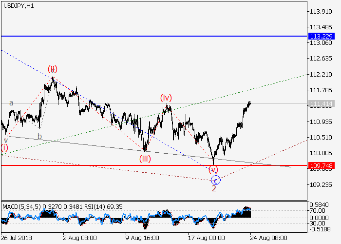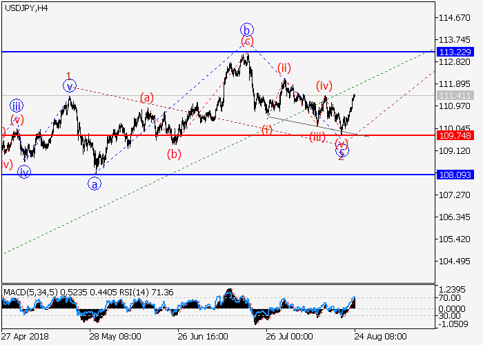 On the 4-hour chart, the correction of the higher level formed as a wave 2 of (C) as a shape of an irregular flat. Now the development of the third wave 3 of C has begun, within which the first entry wave is forming. If the assumption is correct, the pair will grow to the levels of 113.22–115.00. The level of 109.74 is critical and stop loss for this scenario.