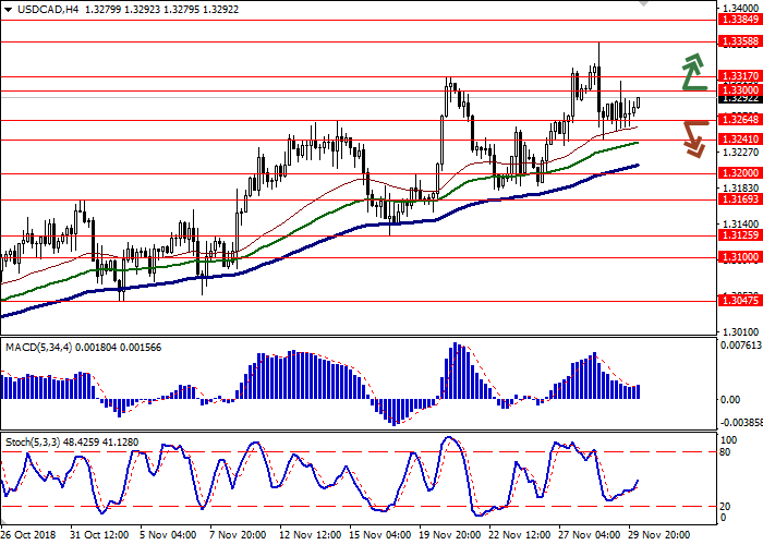 Long positions can be opened after the breakout of the level of 1.3300 or 1.3317 with the targets at 1.3358 or 1.3384–1.3400. Stop loss is 1.3280–1.3264.