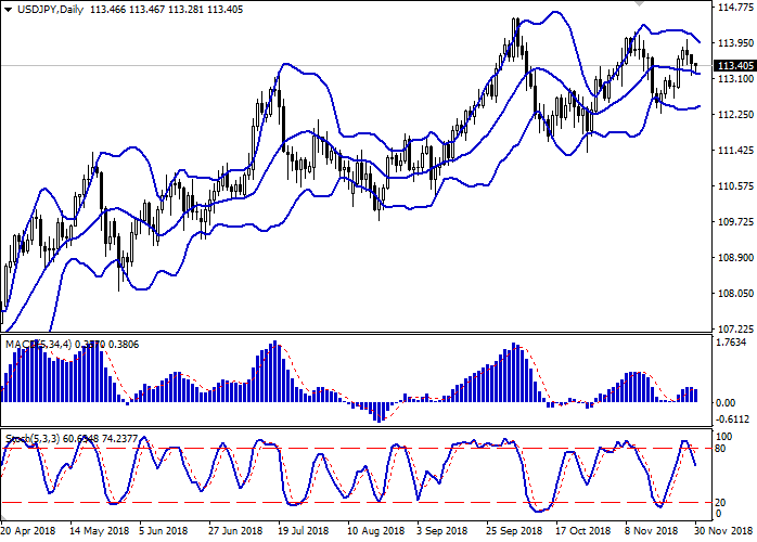 Bollinger Bands in D1 chart demonstrate flat dynamics. The price range is actively narrowing, reacting to the emergence of "bearish" trend in the short term. MACD is declining keeping a weak sell signal (located below the signal line). Stochastic demonstrates a similar dynamics, retreating from its maximum values.