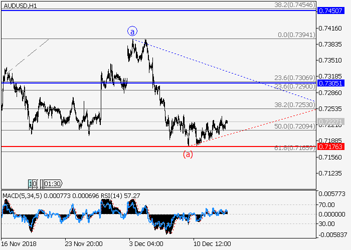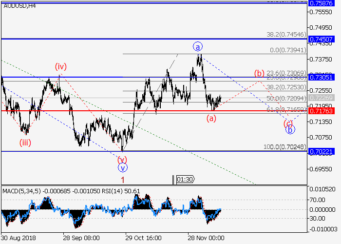 Breakdown and consolidation of the price below the level of 0.7176 will allow the pair to decline to 0.7022.