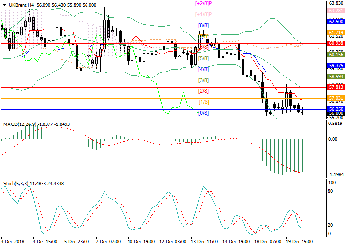 Oil quotes show negative dynamics having reached the level of 56.03, the minimum value for the last 14 months.