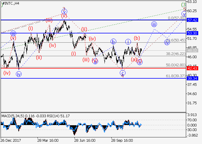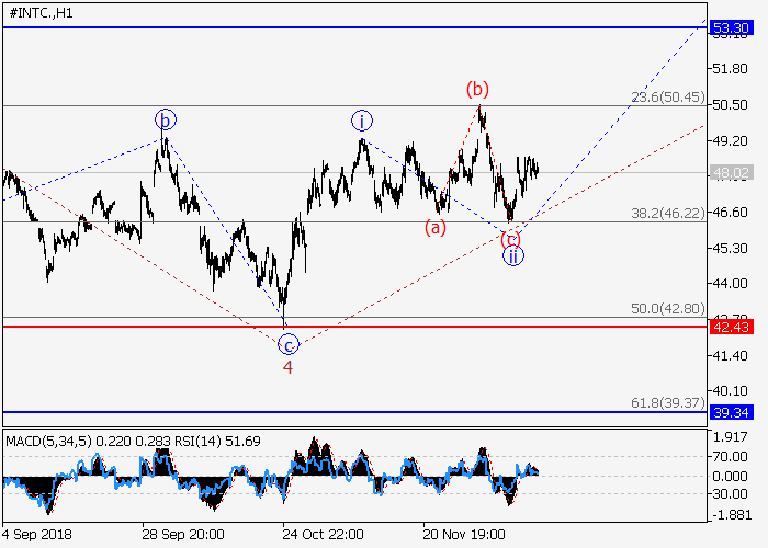 On the 4-hour chart, the downward correction as the fourth wave 4 of the senior level was completed. Locally, apparently, the fifth wave 5 began, within which the first wave of the junior level i of 5 was formed, and the local correction ii of 5 took the form of an irregular plane. If the assumption is correct, the rise in the price will continue to 53.30–57.40. The critical level for this scenario is 42.43.