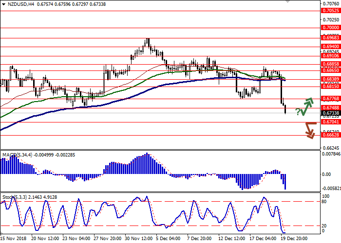 Short positions can be opened after the breakdown of the level of 0.6704 with the targets at 0.6630 or 0.6609–0.6600. Stop loss is 0.6750. Implementation period: 1–2 days.