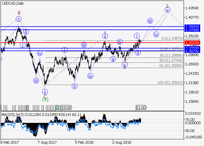 Breakdown and consolidation of the price below the level of 1.3319 will allow the pair to decline to the levels of 1.3158–1.3079.
