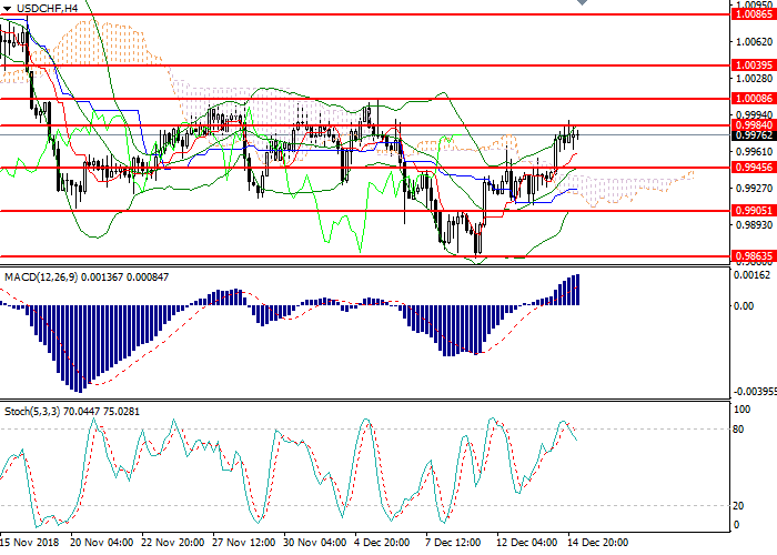 On the 4-hour chart, the pair was corrected to the upper Bollinger band. The key resistance level is 0.9985. The indicator is directed upwards, and the price range remains unchanged, indicating a continuation of the uptrend. MACD histogram volumes are growing in the positive zone, keeping a strong buy signal. The Stochastic left the overbought area, generating a strong signal to open short positions.