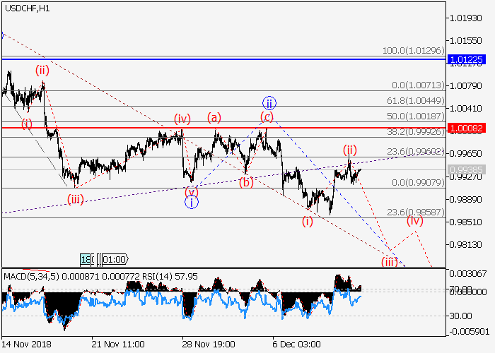 On the H4 chart, the downward correction of the higher level continues as a wave (2), which includes the formation of the wave C of (2). At the moment, it seems that the local correction ii of C has completed, and the third wave iii of C has begun. If the assumption is correct, the pair will continue to decline to 0.9724-0.9618. The critical level for this scenario is 1.0008.