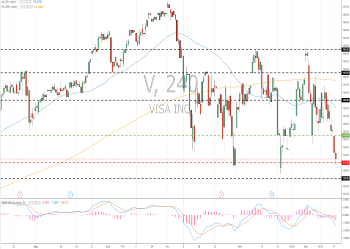The emitter continues to trade in the flat market. No single direction tendencies are observed. At the moment, #V quotes are consolidating near the key demand zone of 129.00-131.00. The local resistance level is 134.50. The instrument has the potential to further correction.