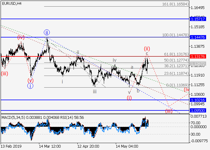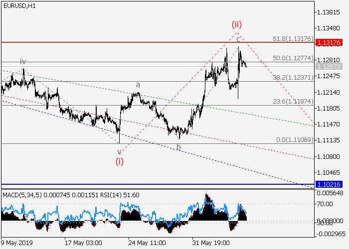 On the 4-hour chart, the third wave of the higher level iii of C of (2) forms. Now, the wave of the lower level (i) of iii of C has formed, and an upward correction has ended as the wave (ii) of iii. If the assumption is correct, the pair will fall to the levels of 1.1020–1.0950. In this scenario, critical stop loss level is 1.1317.