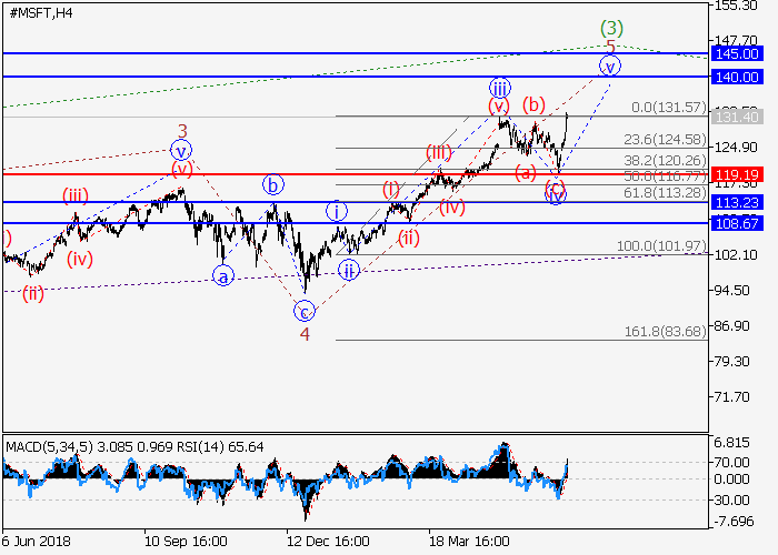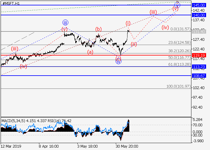 On the 4-hour chart, the fifth wave 5 of (3) of the higher level develops. Now, the third wave of the lower level iii of 5 has formed, the local correction iv of 5 has developed, and the formation of the wave v of 5 has begun. If the assumption is correct, the price will grow to the levels of 140.00–145.00. In this scenario, critical stop loss level is 119.19.