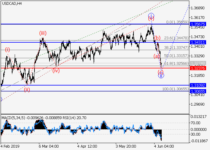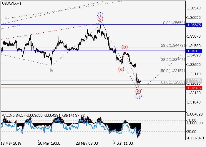 On the 4-hour chart, the third wave of the higher level 3 develops. Now, the first wave of the lower level i of 3 has formed as a wedge, and a local correction has developed as the wave ii of 3, which has reached the level of 62%. If the assumption is correct, the pair will grow to the levels of 1.3431–1.3567. In this scenario, critical stop loss level is 1.3237.