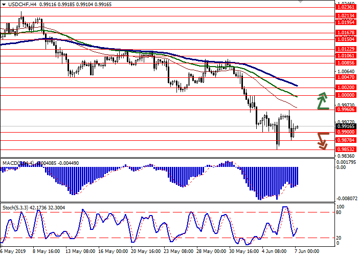 Short positions can be opened after the breakdown of 0.9900 or 0.9878 with the target at 0.9830 or 0.9810. Stop loss is 0.9920–0.9940.