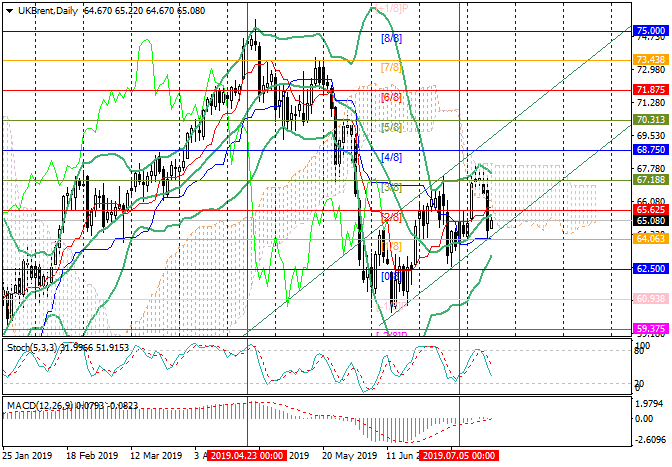 Investors' hope for easing tensions in the Middle East lowered quotes to 64.10. However, today they started to recover. Iranian Foreign Minister of the Islamic Republic, Mohammad Javad Zarif, said that negotiations would become possible only if the sanctions were lifted and the supply of American weapons to the region was stopped. Quotes are also supported by API report, according to which oil reserves in the US declined for the fifth consecutive month, this time by 1.401 million barrels. Gasoline stocks declined by 0.476 million, and stocks of distillates grew by 6.230 million barrels. Today, the market is waiting for the weekly EIA report. The indicator is expected to decline by 2.694 million barrels, which may support prices.